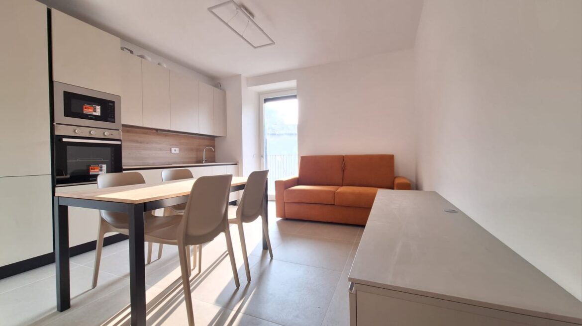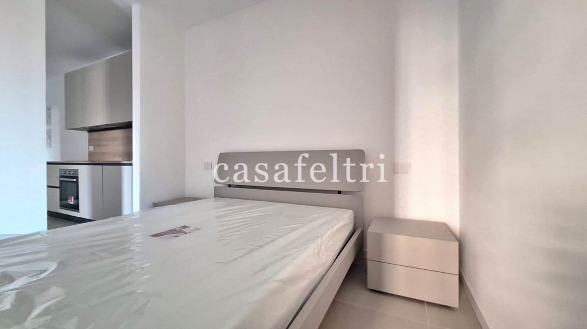 L’appartamento è composto da un unico vano che integra un’area giorno con cucina a vista e una camera da letto confortevole.
