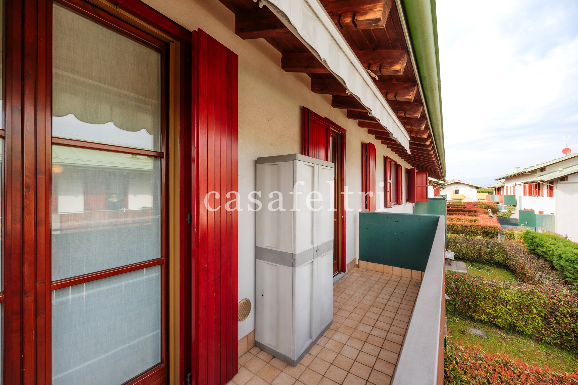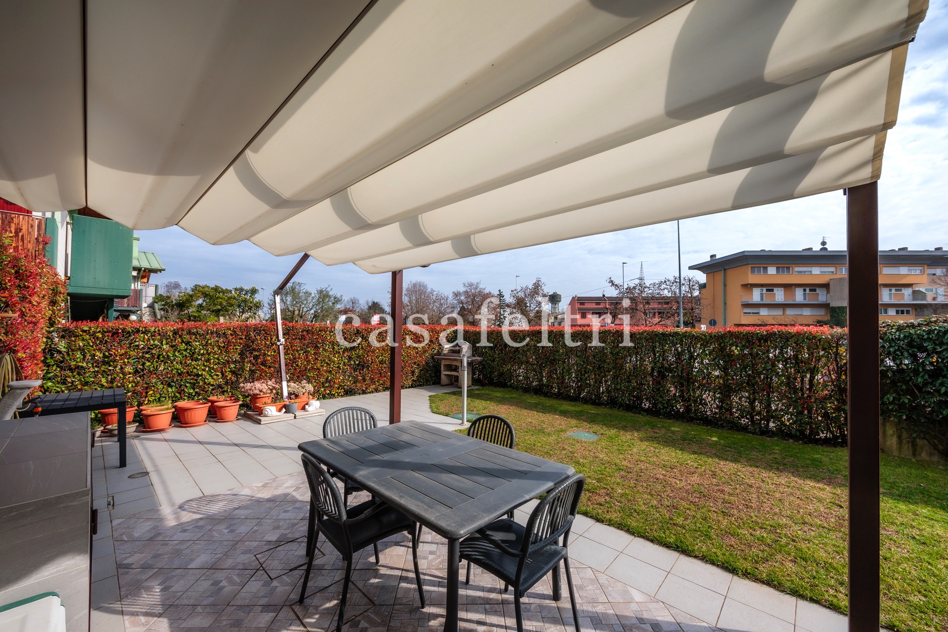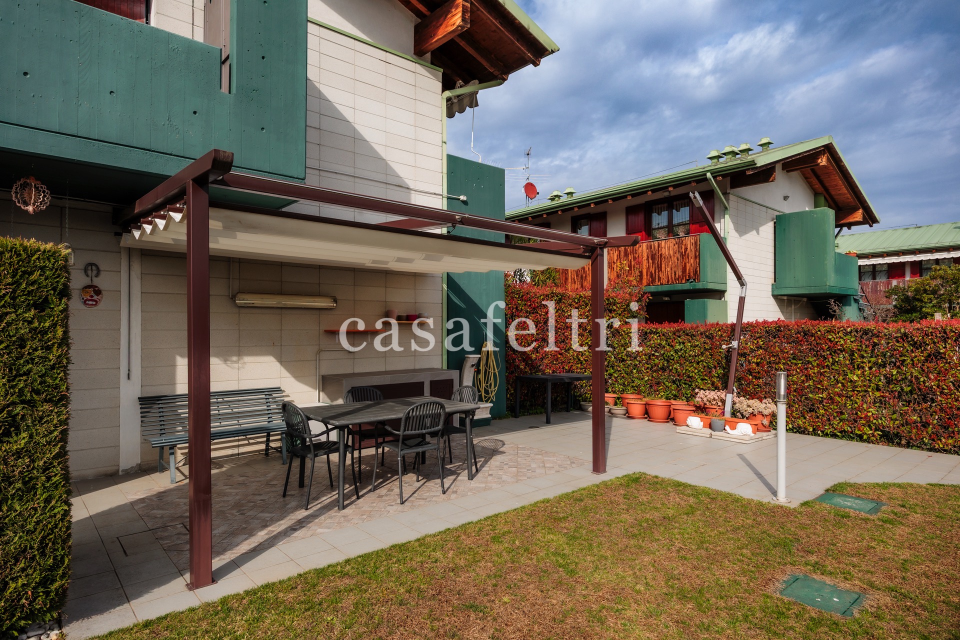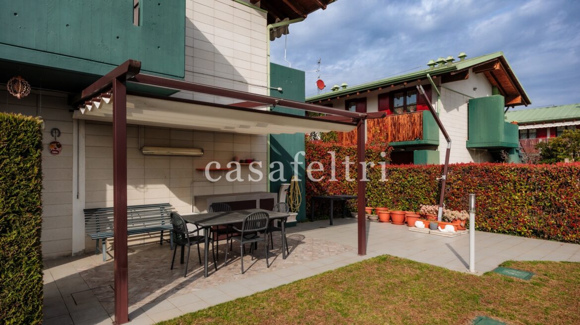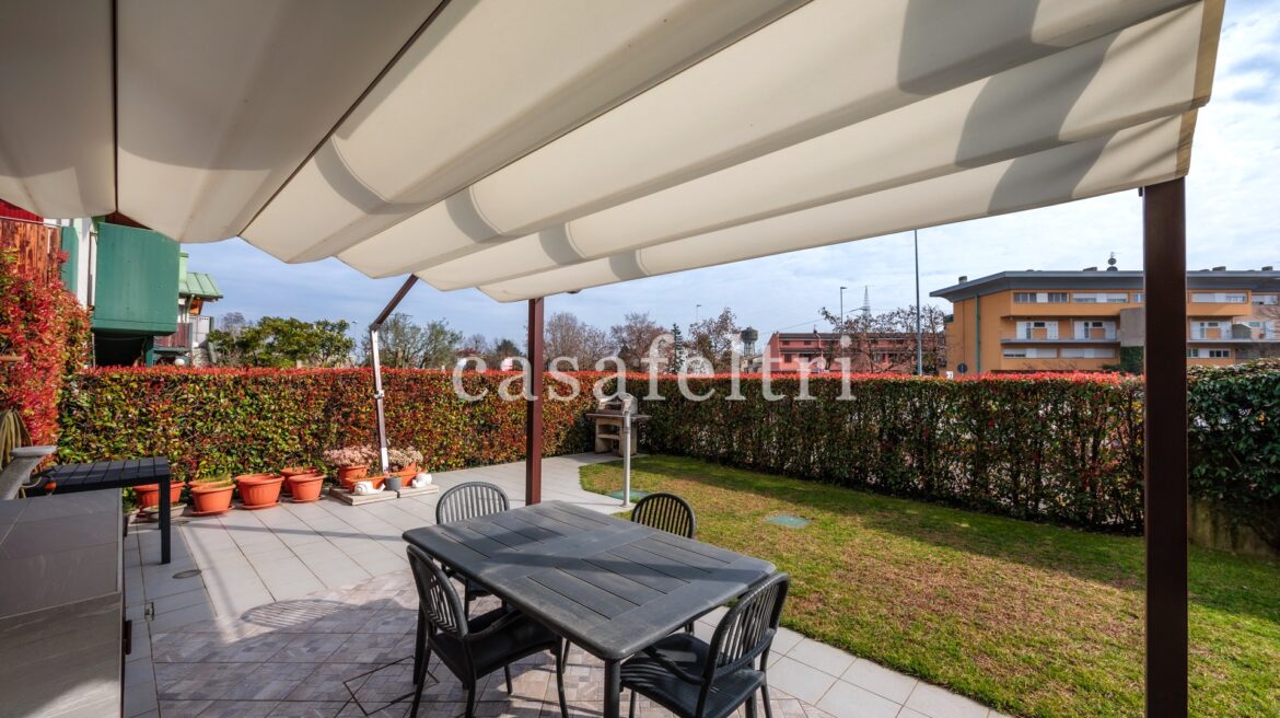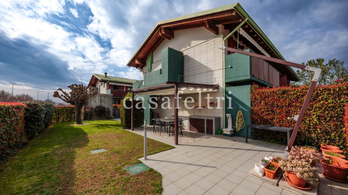 Si accede all’immobile attraverso un ingresso indipendente che subito ci mostra un giardino ben tenuto, in parte pavimentato, di circa 160 mq, ideale per trascorrere momenti di pace e relax, con barbecue e magnifico pergolato.