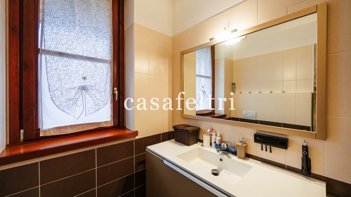 Tramite una comoda scala si arriva al piano primo ove è ubicato l’immobile che è così disposto: ingresso sull’ampio soggiorno al quale si accede ad una grande terrazza vivibile, cucina abitabile e separata da una splendida vetrata, anch’essa con un balcone, disimpegno che conduce nella zona notte ove vi sono 3 camere da letto (una matrimoniale, una doppia e una singola ampia) oltre doppi servizi finestrati.