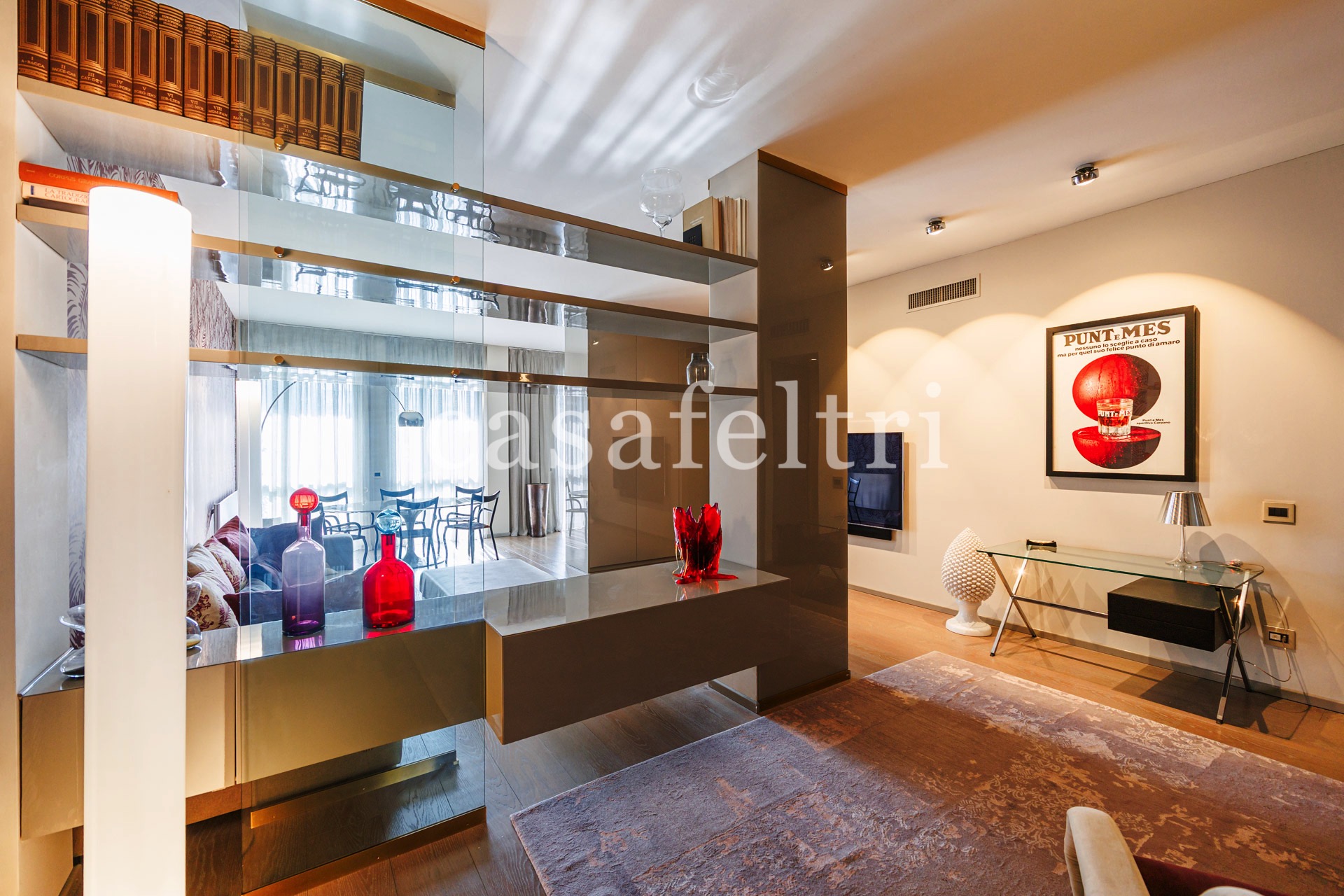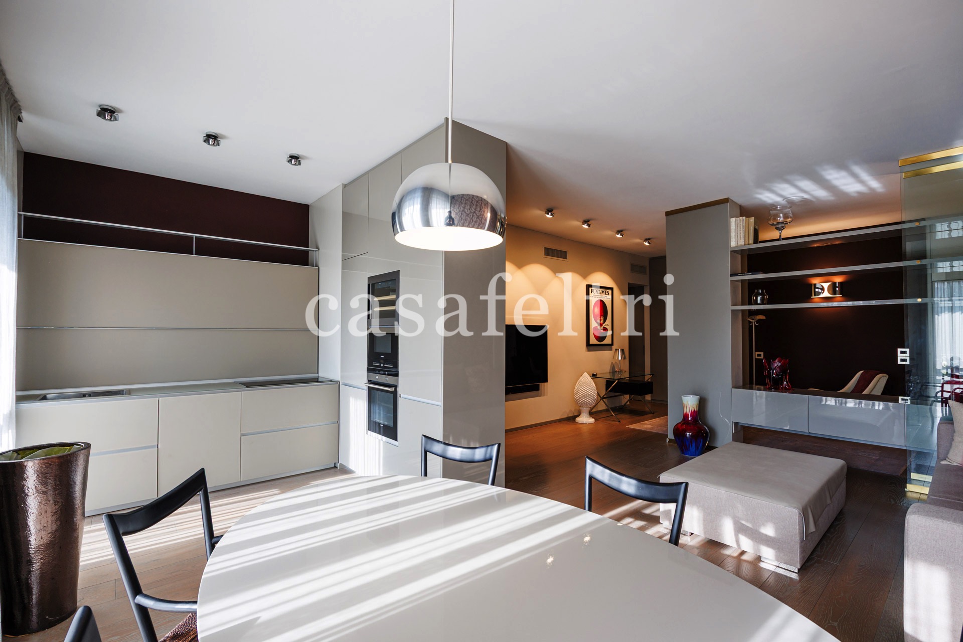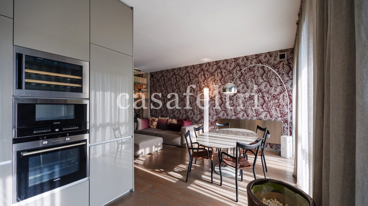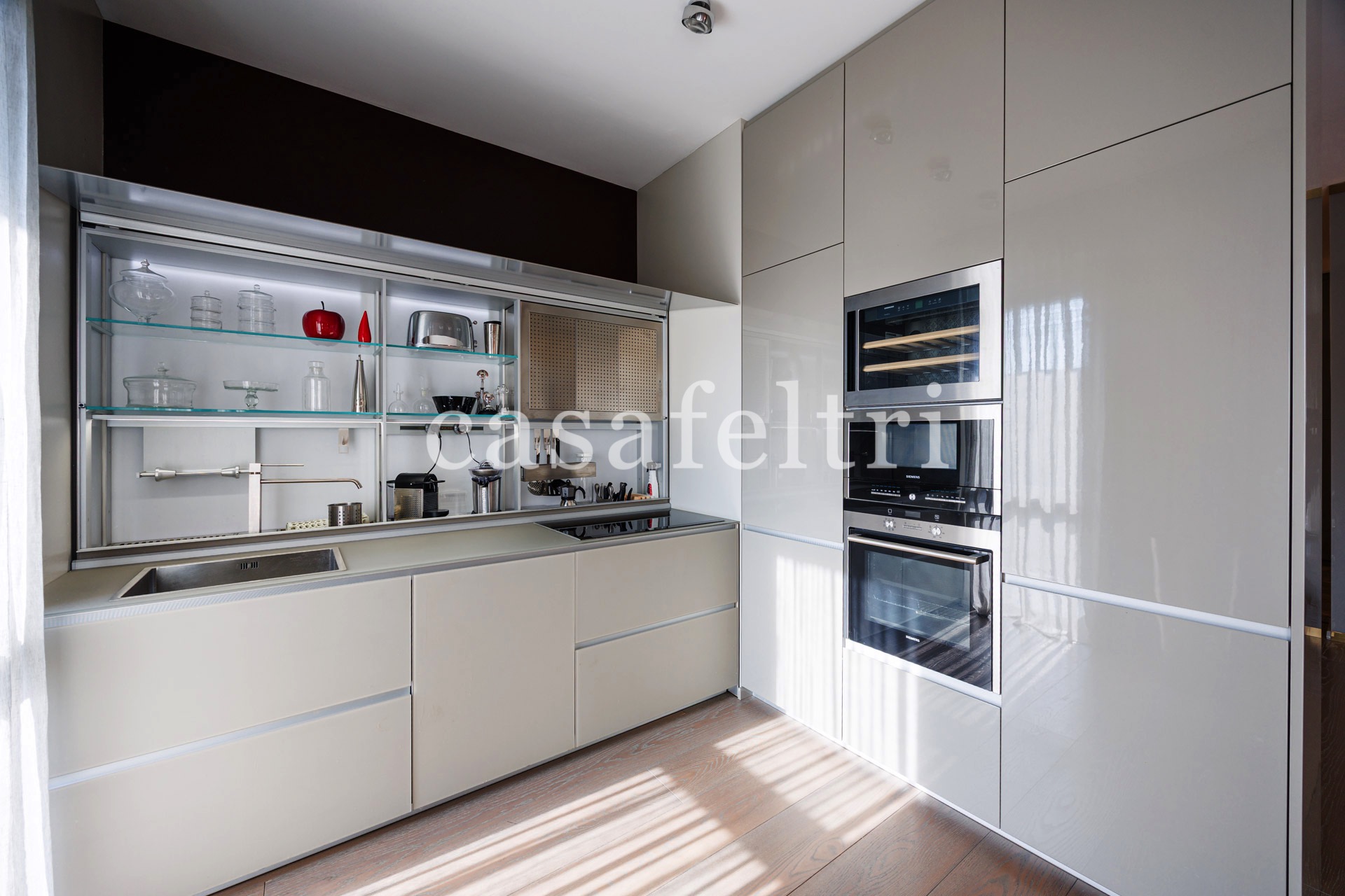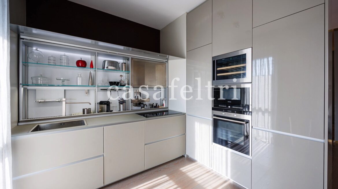Aria condizionata canalizzata, cucina a scomparsa, parquet, impianto di filo diffusione audio… sono solo alcune delle caratteristiche di questo appartamento di pregio da scoprire.