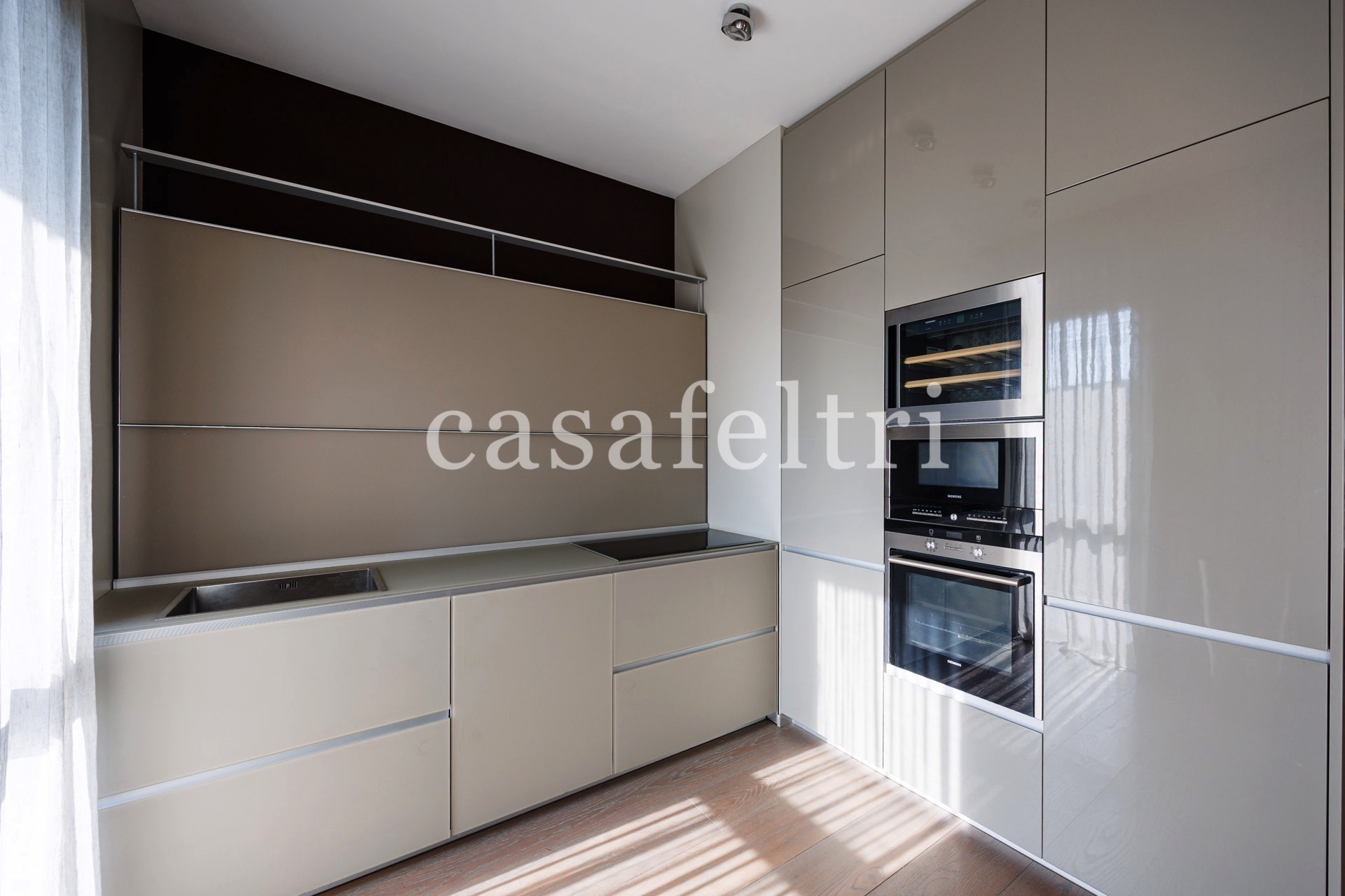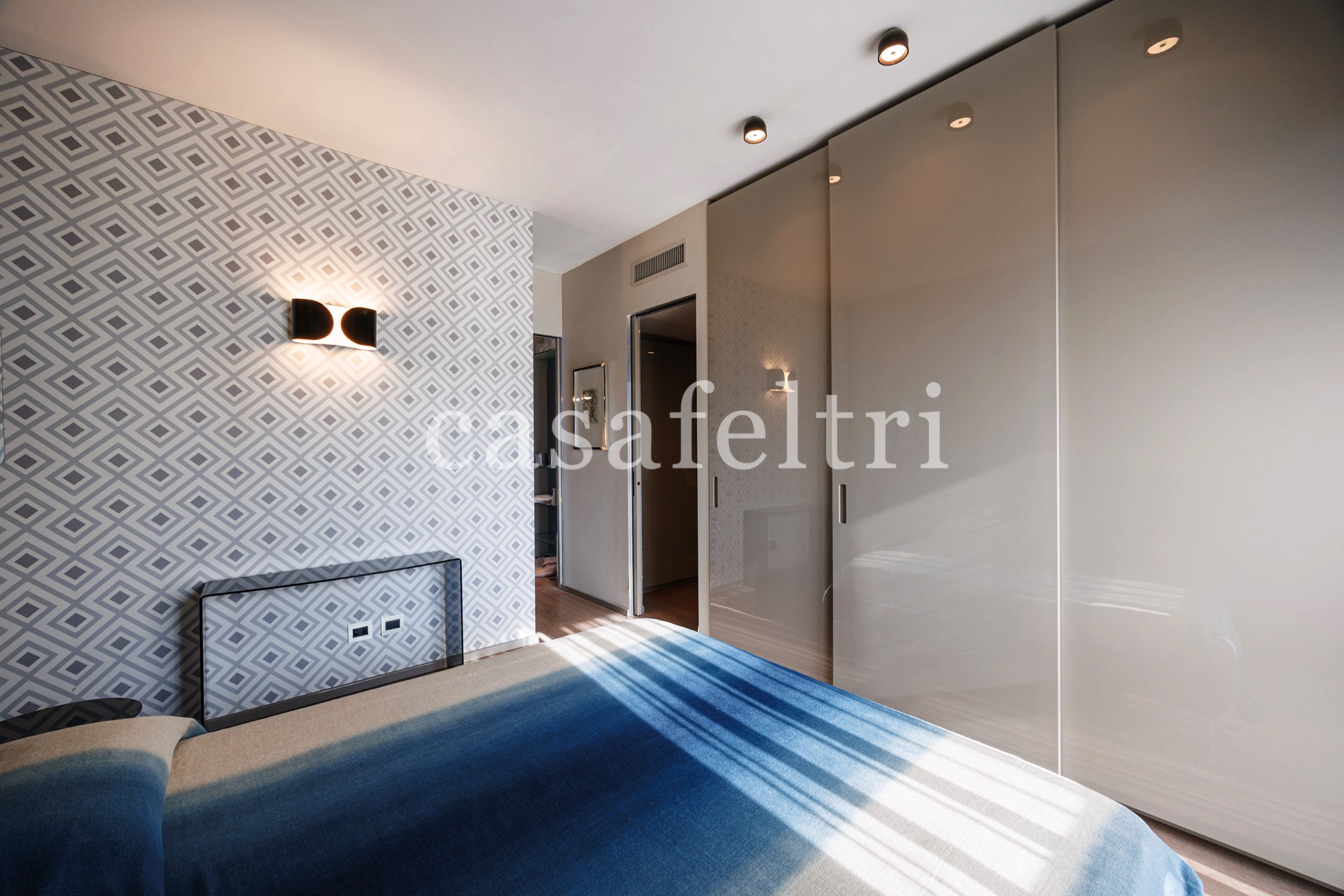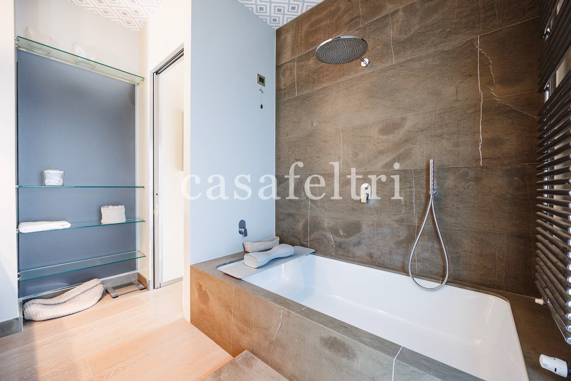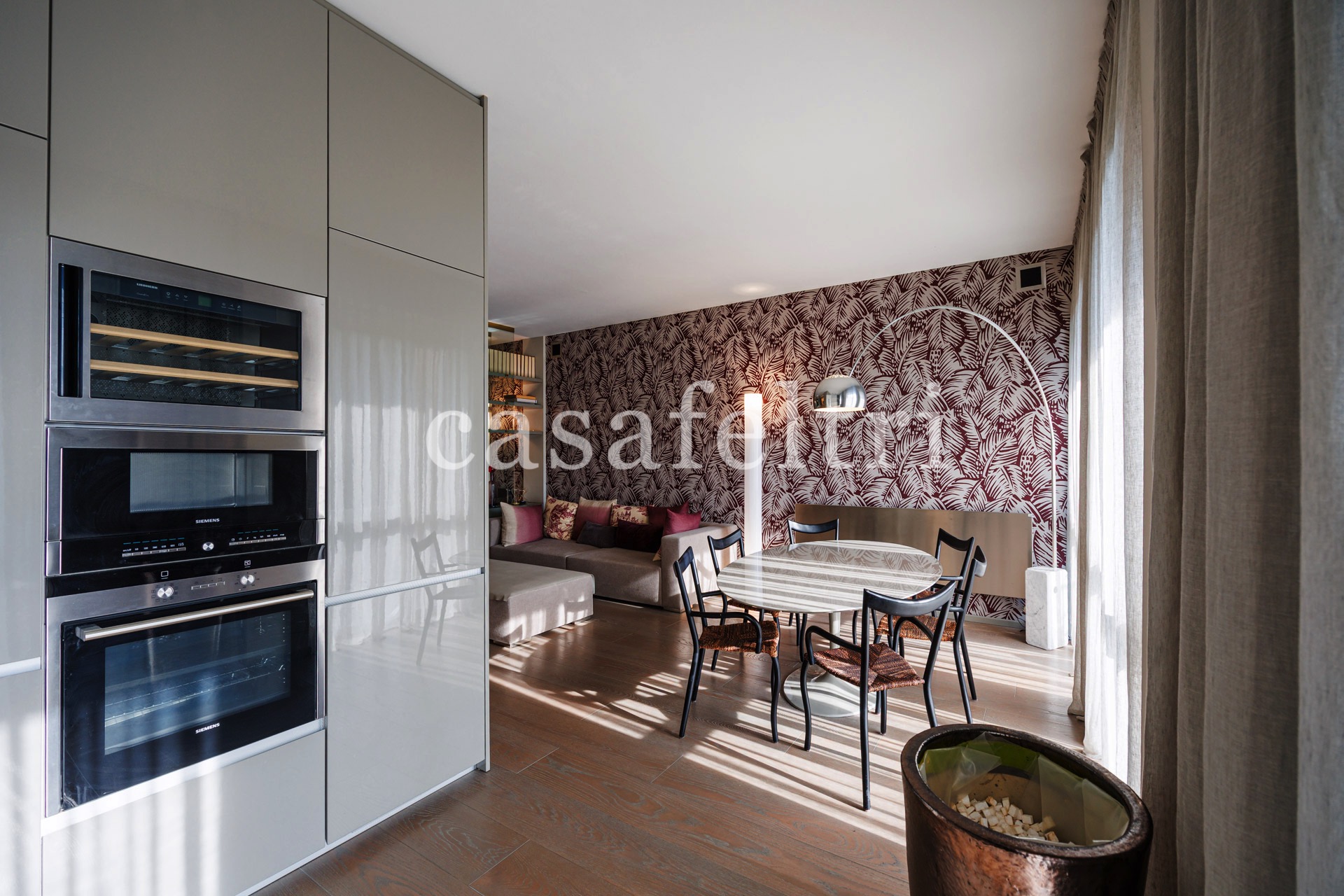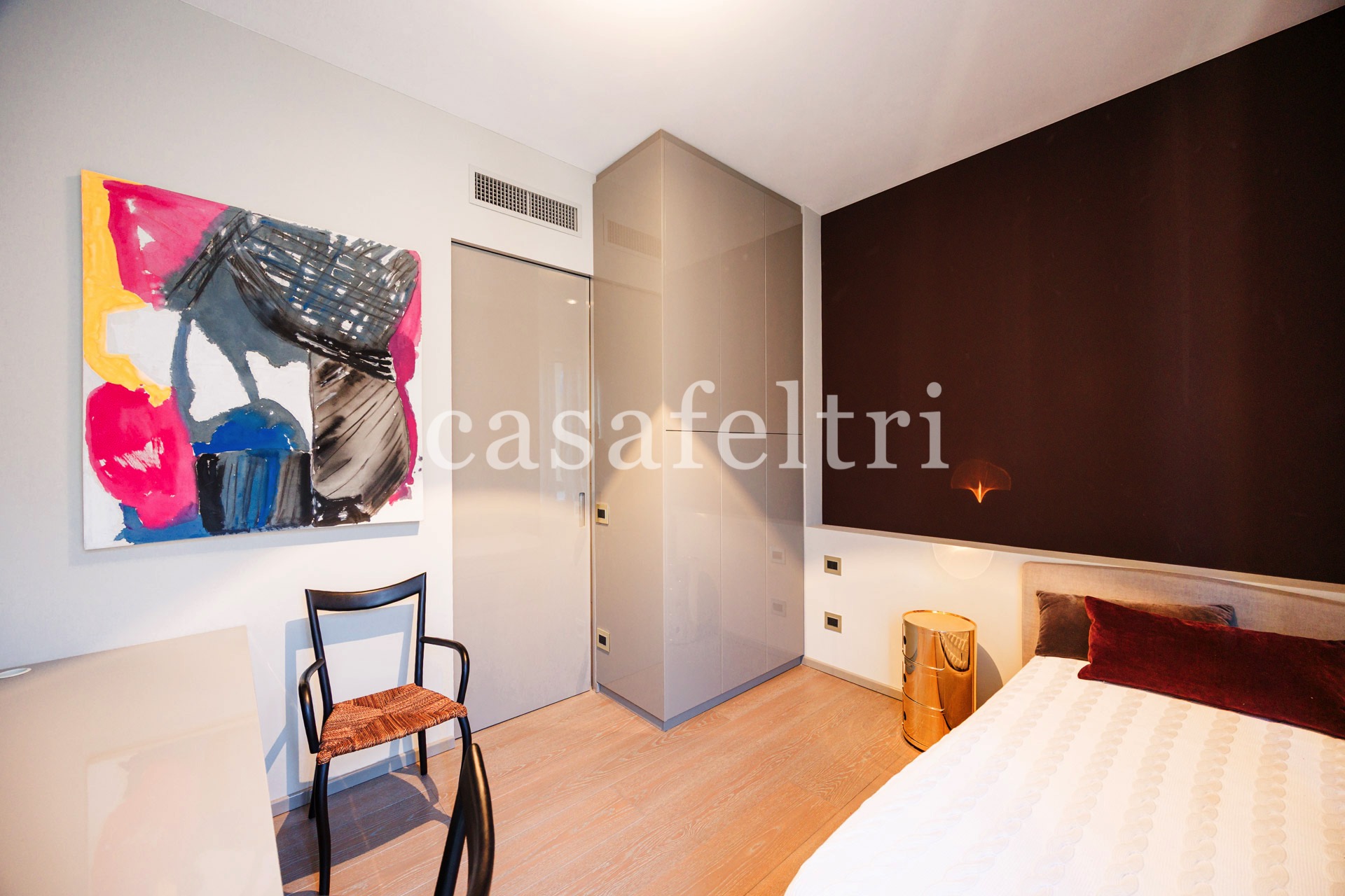Aria condizionata canalizzata, cucina a scomparsa, parquet, impianto di filo diffusione audio… sono solo alcune delle caratteristiche di questo appartamento di pregio da scoprire.