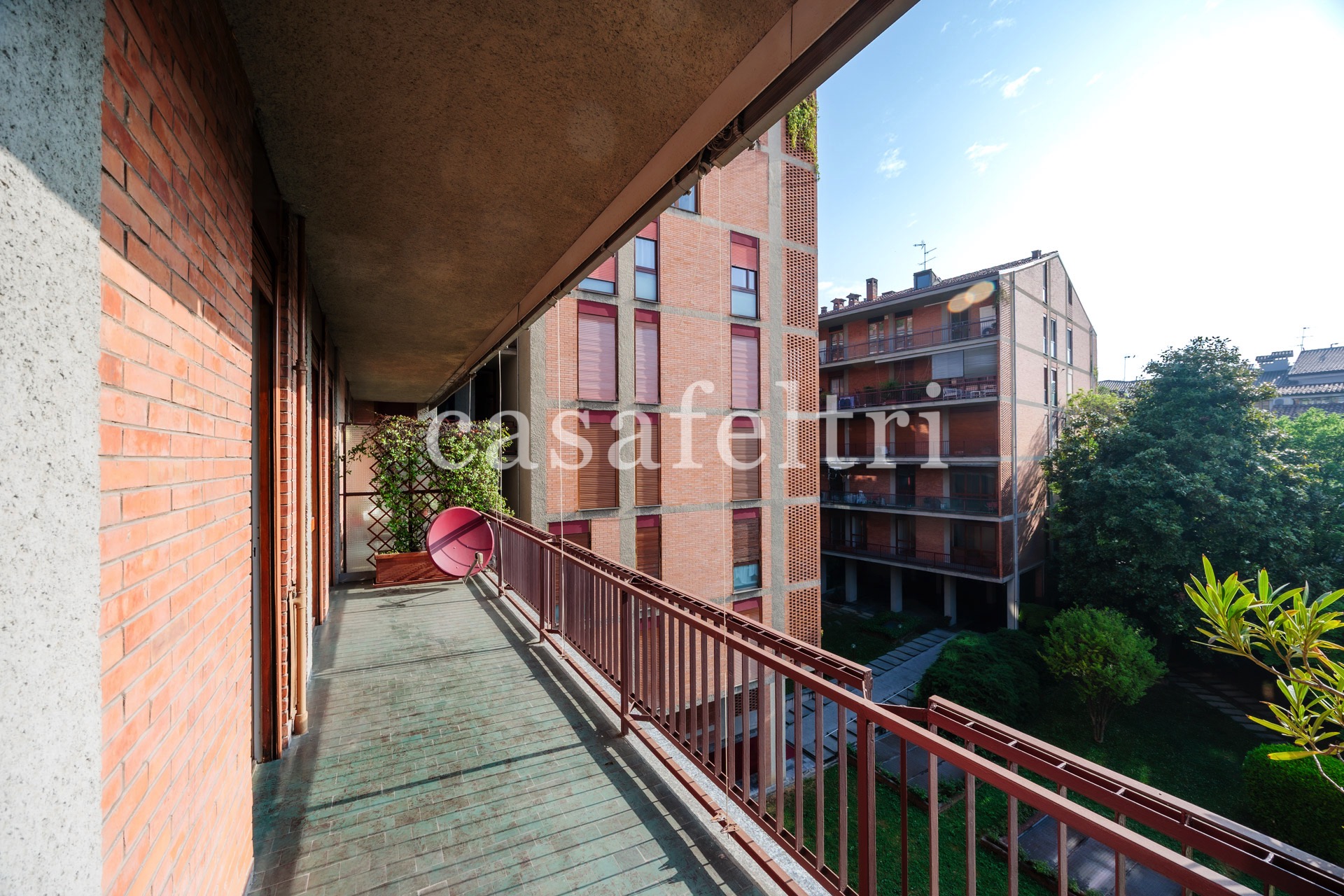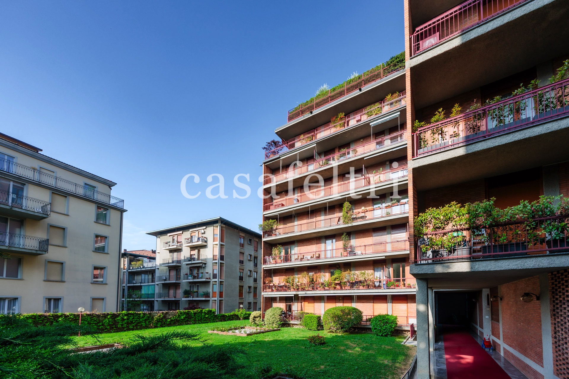 Sito al terzo piano con ascensore, in stabile signorile con portineria, questo immobile egregiamente rifinito, è così disposto: ingresso, ampio soggiorno triplo con zona living, tavolo da pranzo e angolo cottura, grande terrazza di 15 mq vivibile che affaccia sul giardino condominiale; tramite due comodi disimpegni con armadiature su misura accediamo poi alle camere da letto, una matrimoniale con bagno padronale finestrato ed una singola con altro servizio con doccia.